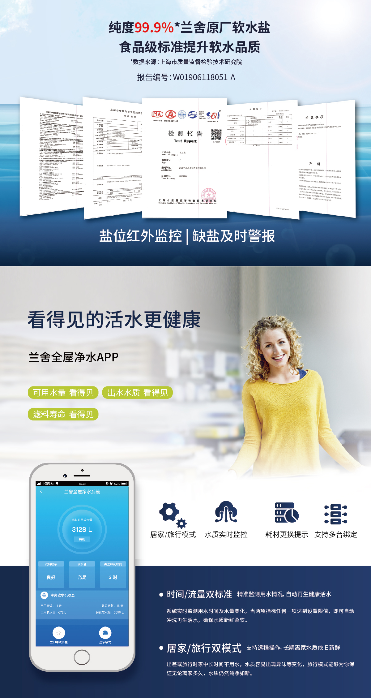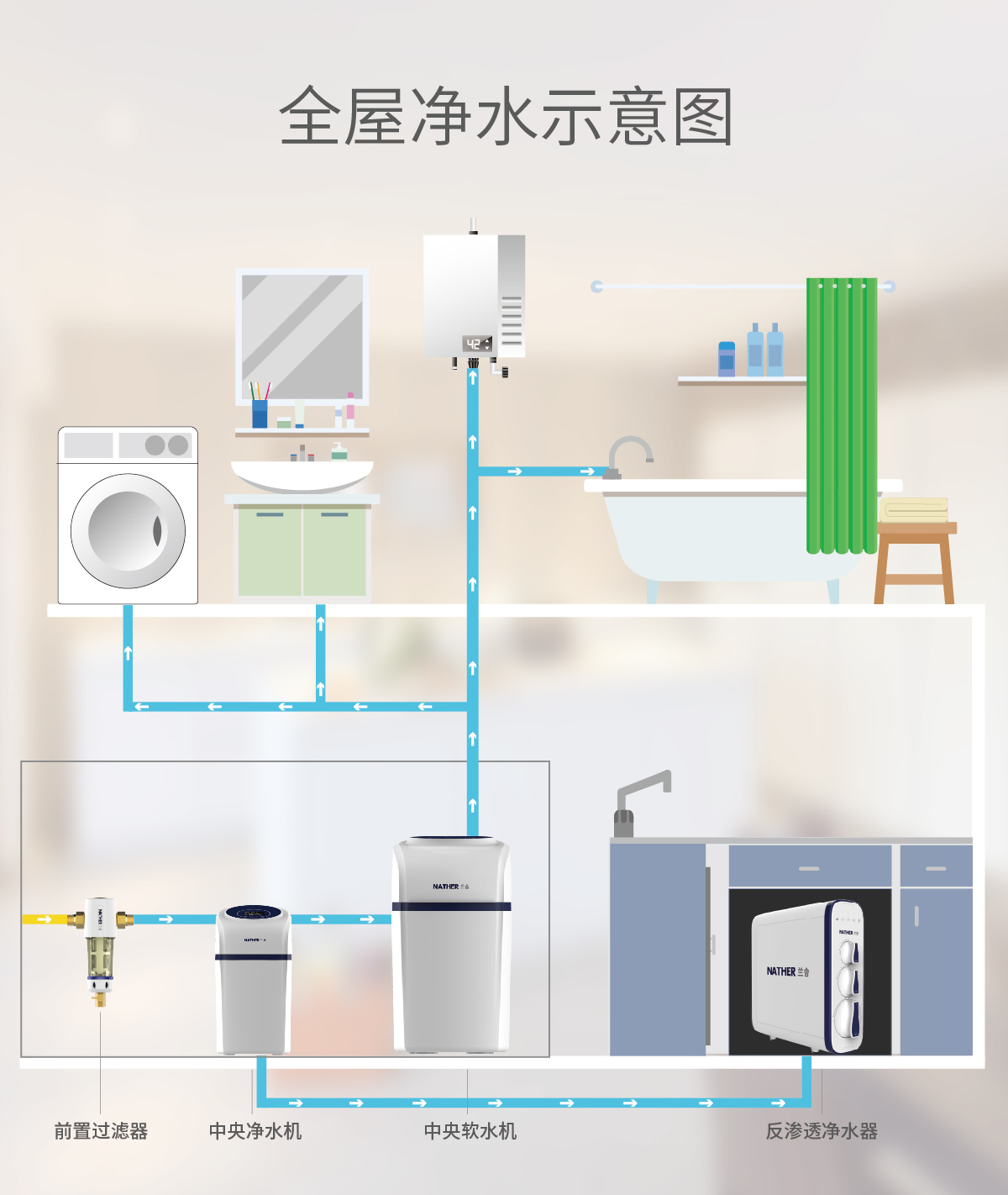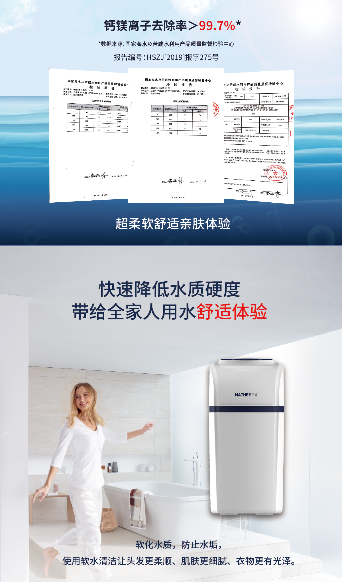 去除水中的鈣、鎂離子,軟化水質(zhì),防止結(jié)垢,提供更具去污能力的綜合軟水裝置