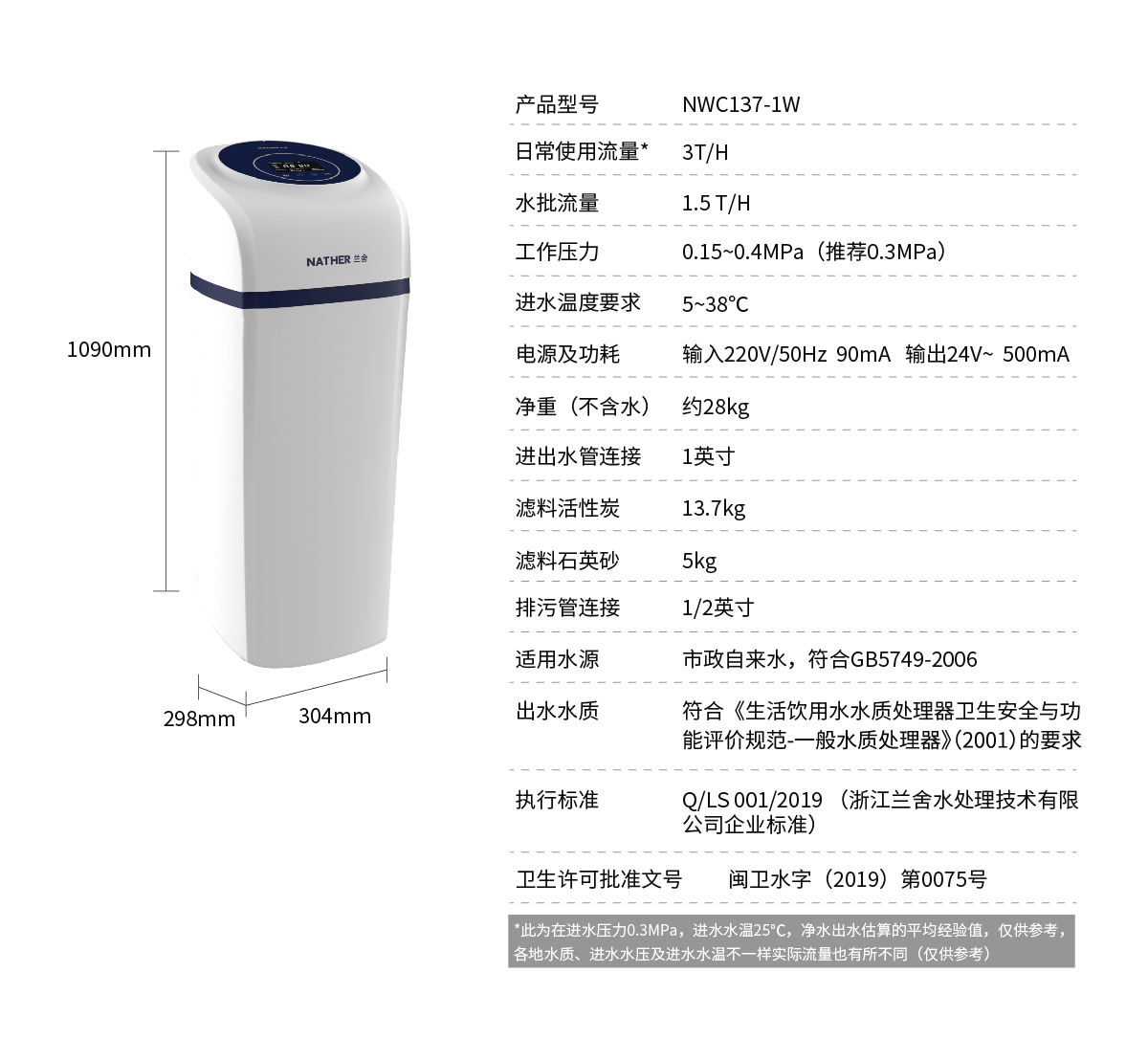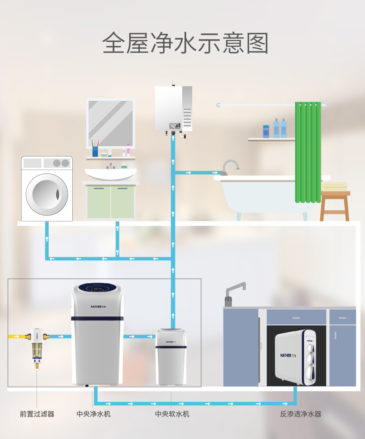 用于去除水中的余氯、藻類、固體懸浮物、異色、異味等污染物,解決家庭整體凈水問題,保護全屋用水凈化需要的綜合凈水裝置